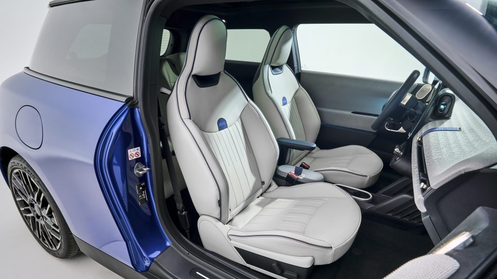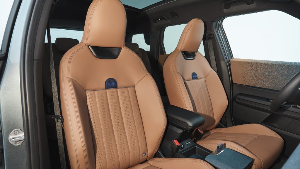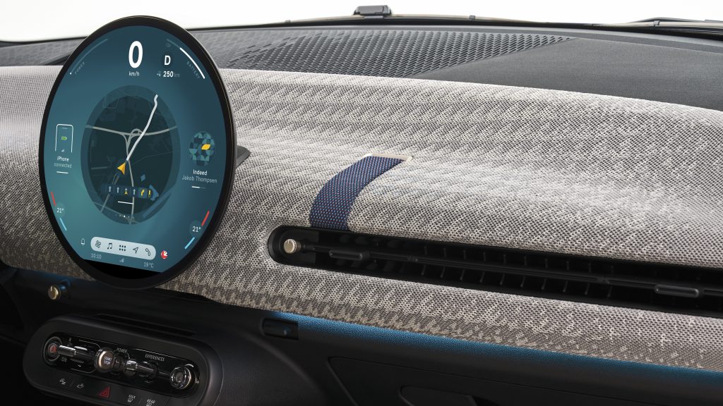 تقدم مقصورة ميني كوبر الآن خيارات تخصيص جديدة. يتميّز تصميمها بأسطح نسيجية وعمليات حياكة مطورة خصيصاً بألوان مختلفة. بالإضافة إلى ذلك، تمتاز مقاعد ميني كوبر الكهربائية بجلد Vescin الاصطناعي عالي الجودة. وتم استخدام أنسجة وخيوط معاد تدويرها في الأسطح النسيجية والبطانة والأرضية. وتضع الشاشة الرقمية OLED المركزية من جهتها معايير جديدة للدقة وتصميم الأداة الدائرية. ويمكن اختيار ما يصل إلى سبعة أوضاع مع MINI Experience Modes لتحسين تجربة القيادة. وتمتد إسقاطات الضوء حول إطار الألوان في العدادات المستديرة، مما يعزز تجربة واجهة المستخدم بشكلٍ شامل.