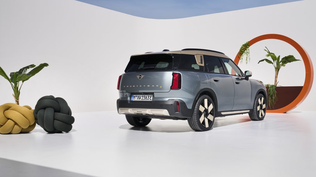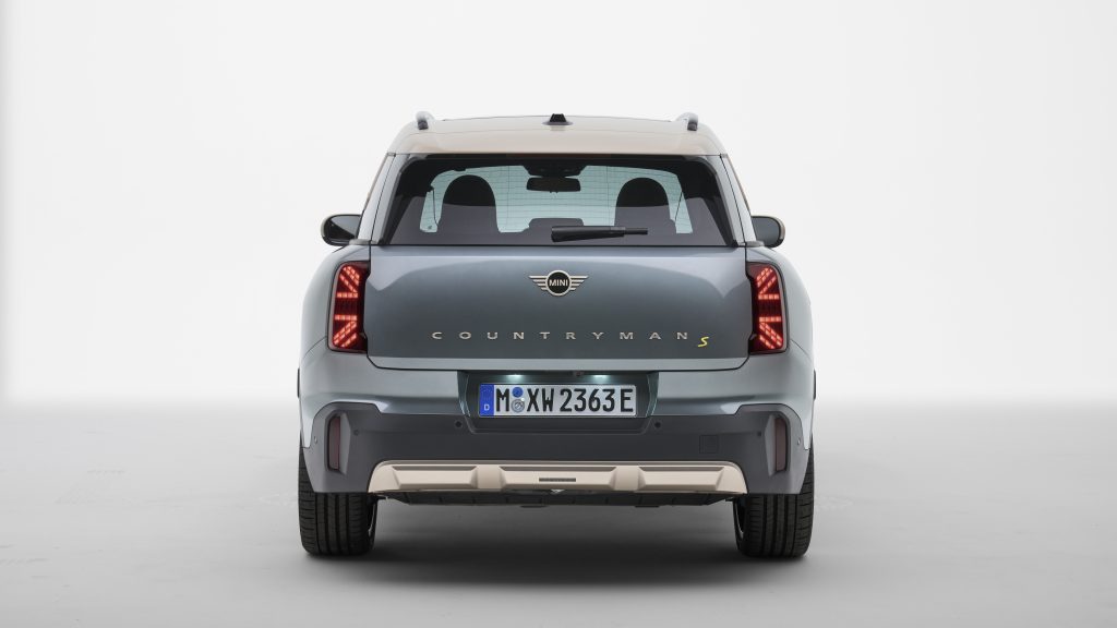والآن لننتقل إلى سيارة ميني كونتري مان الجديدة. شهدت هذه النسخة تعديلاً في أبعاد الهيكل الخارجي. إذ حصلت على ست سنتيمترات إضافية في الارتفاع، وثلاثة عشر سنتيمتراً لناحية الطول. مما يُضفي المزيد من المساحة الداخلية والرحابة والراحة. وتعمل أقواس العجلات الأوسع والتصميم العصري الواضح على تعزيز المظهر الجمالي للكروس أوفر المغامرة. كما يختلف التصميم الأنيق للعمود الخلفي باختلاف الفئة، حيث يعتمد ويتناغم كذلك وفقاً للون السقف المُختار. أما مصابيح Matrix الخلفية الجديدة، فتأتي بإطارٍ مستقيم يُحيط بالجزء الخلفي الذي يتناقص عرضه أسفل حروف اسم الإصدار. ويكتمل ذلك مع شريط السيارة المذهل باللون الأسود، ما يؤكد حضورها القوي.