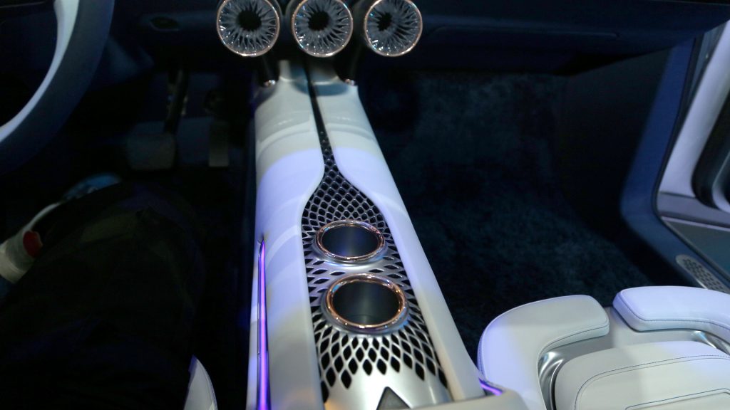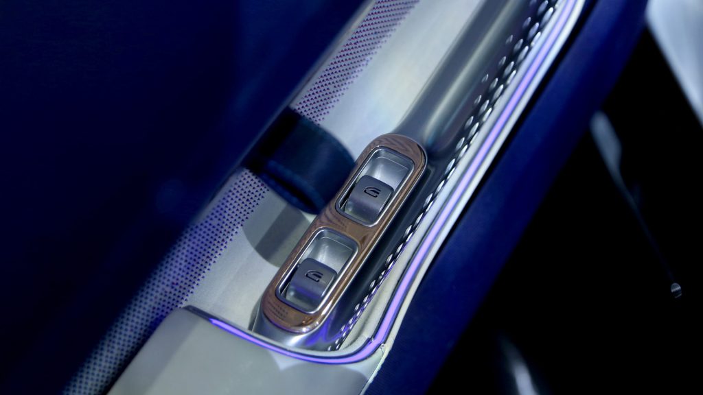 من الداخل، لدينا نظام معلومات وترفيه في العالم حتى الآن مع شاشة هايبر سكرين الكبيرة.. للقيمنق طبعاً كما ذكرنا سابقاً.. مع التركيز بشكل كبير على التغيير المستدام والطبيعة نفسها وأحدث المواد. بما ذلك مقابض الأبواب المصنوعة من ألياف Biosteel، وهي نسيج شبيه بالحرير عالي القوة يعتمد على التكنولوجيا الحيوية، واستخدام مواد النفايات المعاد تدويرها، مثل زجاجات البولي المعاد تدويرها في نسيج الأرضيات والأبواب. بالإضافة إلى مجموعة من جلد ومواد نباتية، مع مكونات صديقة للبيئة في الوسائد الهوائية.
