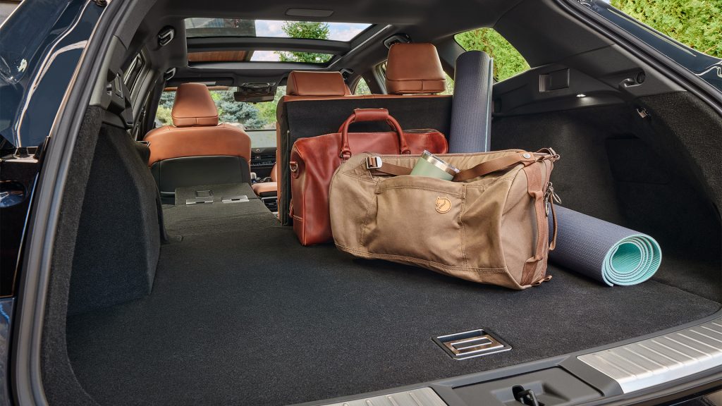 تأتي المقصورة الداخلية للسيارة بمساحة أكبر من الفئة المتوسطة مع مقاعد تتّسع لخمسة أشخاص، مع إمكانية طي الصف الثاني لزيادة مساحة التخزين. تزيّن الجزء الأمامي من المقصورة شاشةً من مقاس 12.3 لتر، نفسها الموجودة في سيارات أخرى لتويوتا. وبطبيعة الحال، تحمل الشاشة أحدث برامج المعلومات والترفيه وتدعم Apple CarPlay وAndroid Auto اللاسلكيين بشكلٍ قياسي. وفي مركبة للعام 2025، لا بُد من تواجد باب خلفي كهربائي يُفتح ويُغلق تلقائياً إثر حركة ركلة أسفل المصد الخلفي.