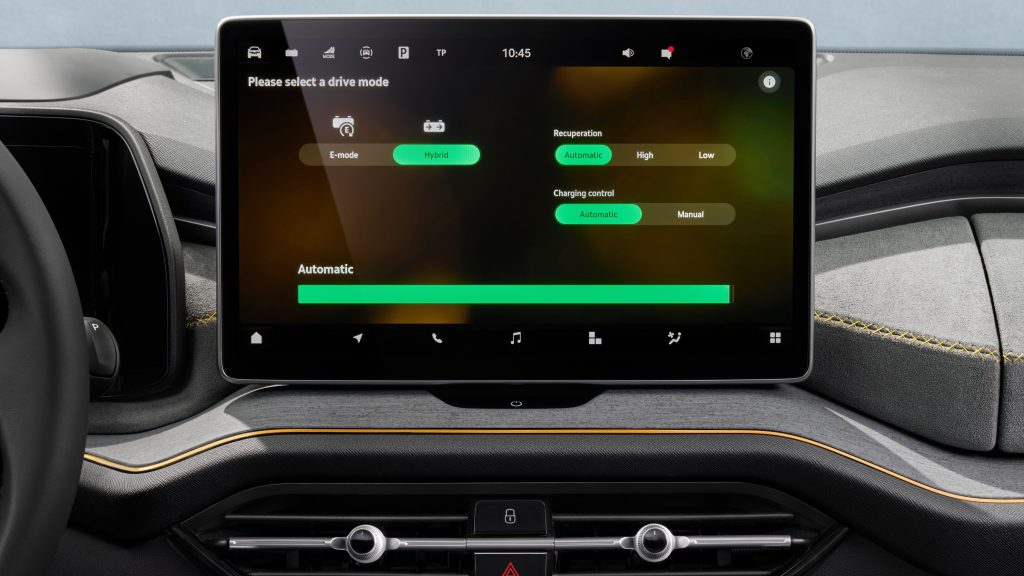 كذلك يتواجد نظام هجين يعمل بالكهرباء يعتمد على محرك 1.5 TSI بقوة 150 حصاناً ويقترن مع محرك كهربائي، يولّدان معاً 201 حصان. يأتي هذا النظام مع حزمة بطارية ليثيوم أيون بسعة 25.7 كيلوواط/س، ليُحقق نطاقاً كهربائياً يتجاوز 100 كم. وعند نفاذ البطارية، يُمكن شحنها بسرعة بقدرة تصل إلى 11 كيلوواط من التيار المتردد أو حتى 50 كيلوواط باستخدام التيار المستمر. من الواضح أن الخيارات عديدة ومناسبة لجميع مدن الشرق الأوسط، لا سيما الخليجية منها.