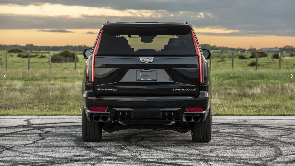 وفي حال شعرتم بعدم ارتقاء حزمة H850 للقدر الكافي من القوة، يُمكنكم الحصول على حزمة H1000 التي توفّر 1005 حصان و1,196 نيوتن متر. هذا بدون نشر أي تفاصيل لبيانات الكفاءة الميكانيكية بعد، مع العلم أن سيارة اسكاليد في القياسية تتسارع إلى 100 كم/س خلال 4.4 ثانية فقط.. لا نستطيع توقّع ما تريده هينيسي من خلال هذه الحزمة.. يتعدّى الأمر هنا كونه صراع على عرش فئة SUV..