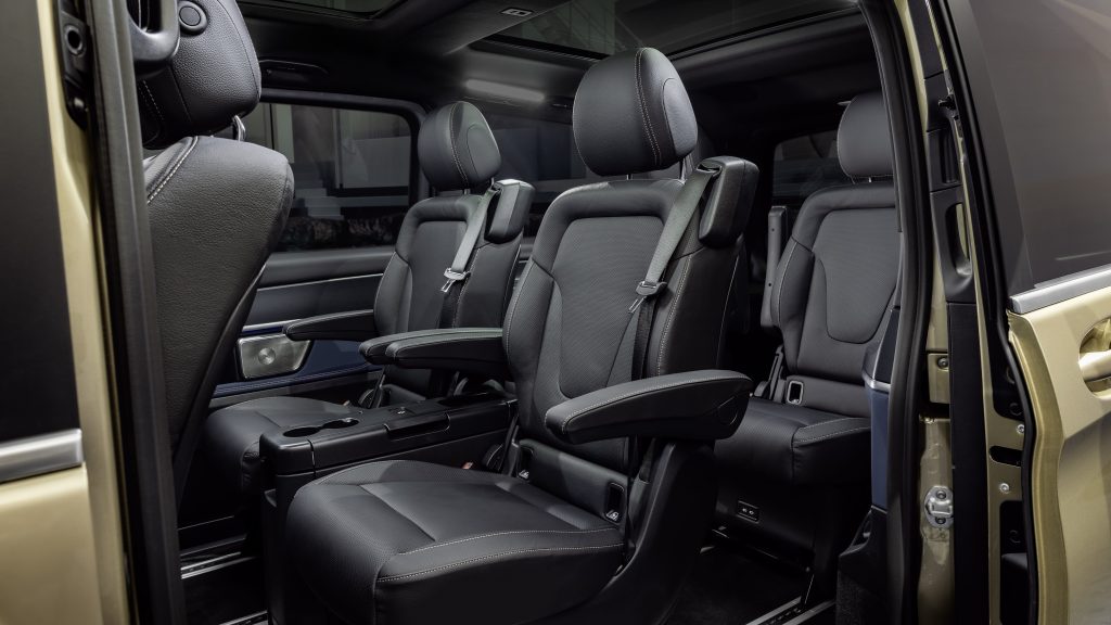 وكإضافاتٍ فريدة، جهّزت مرسيدس هذه السيارات بنظام التشغيل بدون مفتاح، مع إضاءة محيطية بـ 64 لوناً وإضاءة خلفية خافتة للقيادة الليلية. ذلك إلى جانب باب منزلق على الجانب الأيسر بشكلٍ قياسي في الفئة V و EQV. ولعل أبرز هذه الإضافات هي المكابح الإلكترونية للركن بشكلٍ قياسي هي الأخرى. كما أنه باستطاعة العملاء الحصول على مصابيح LED متعددة الشعاع حسب الطلب. كما جرى تثبيت كاميرا بزاوية 360 درجة في الفئات كافة.